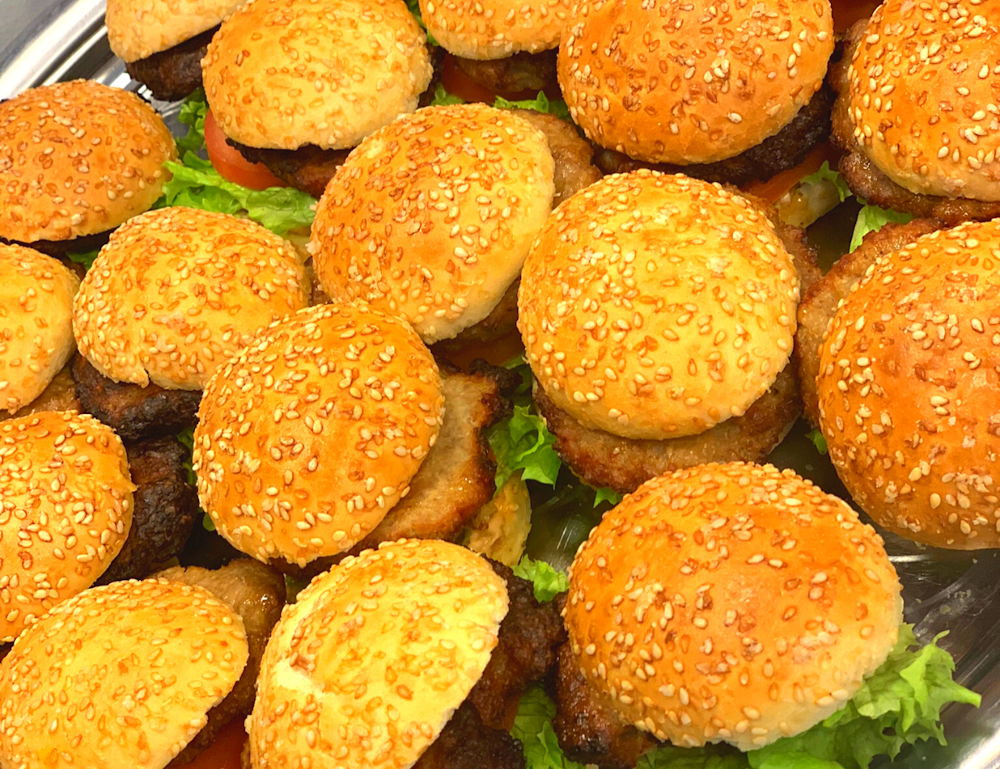 De broodjes worden kant en klaar op een schotel geleverd. U warmt de burgers (voorgebakken) thuis nog even op in de bijgeleverde ovenschotel, leg ze tussen de broodjes en deze zijn klaar om te serveren.